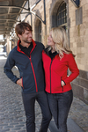 Angenehmes, weiches 2-Lagen Softshellmaterial Wasserabweisend, winddicht, atmungsaktiv Innenseite aus weichem Microfleece Durchgehend hinterlegter Frontreißverschluss mit Kinnschutz 2 seitliche Taschen mit Reißverschluss, 2 Innentaschen Elastische Einfassung am Ärmel JN1129: taillierte Form