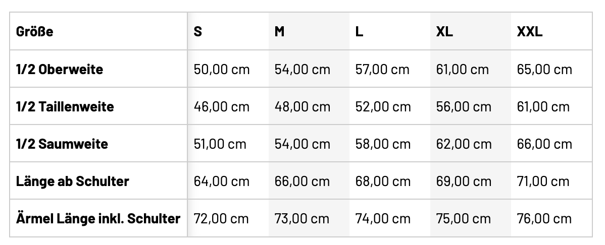 Ärmel Länge inkl. Schulter 72 73 74 75 76
