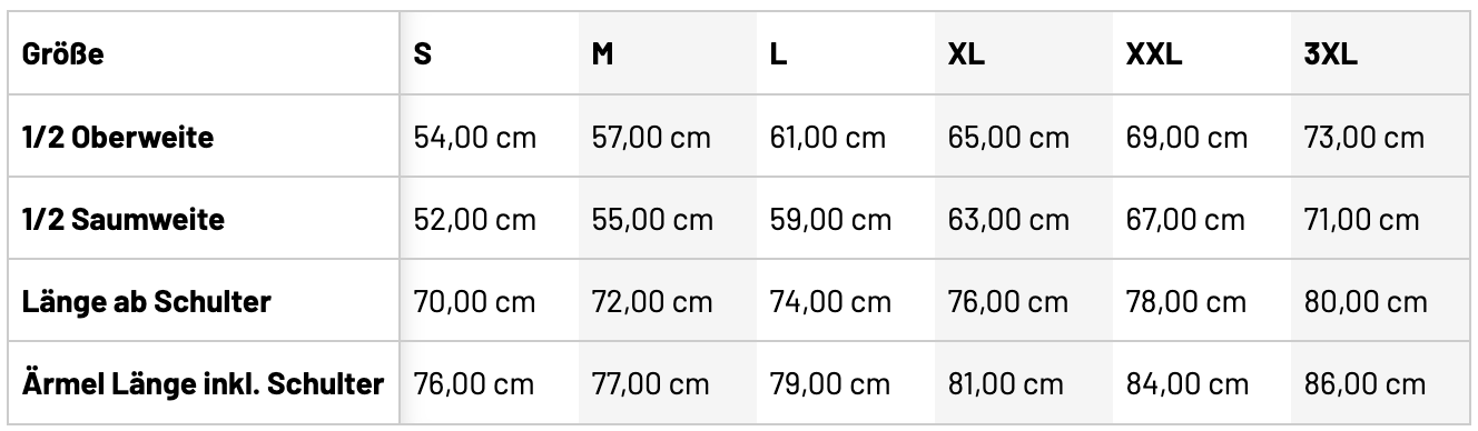 Ärmel Länge inkl. Schulter 76 77 79 81 84 86