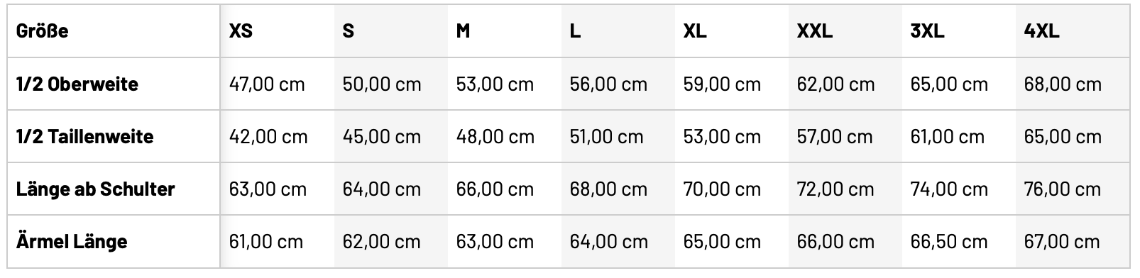 • Größentabelle