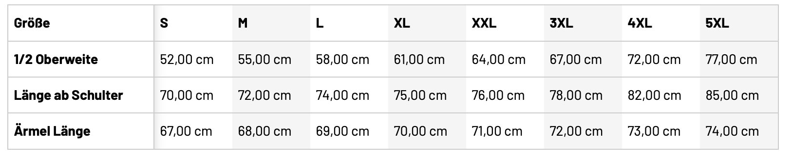 • Größentabelle