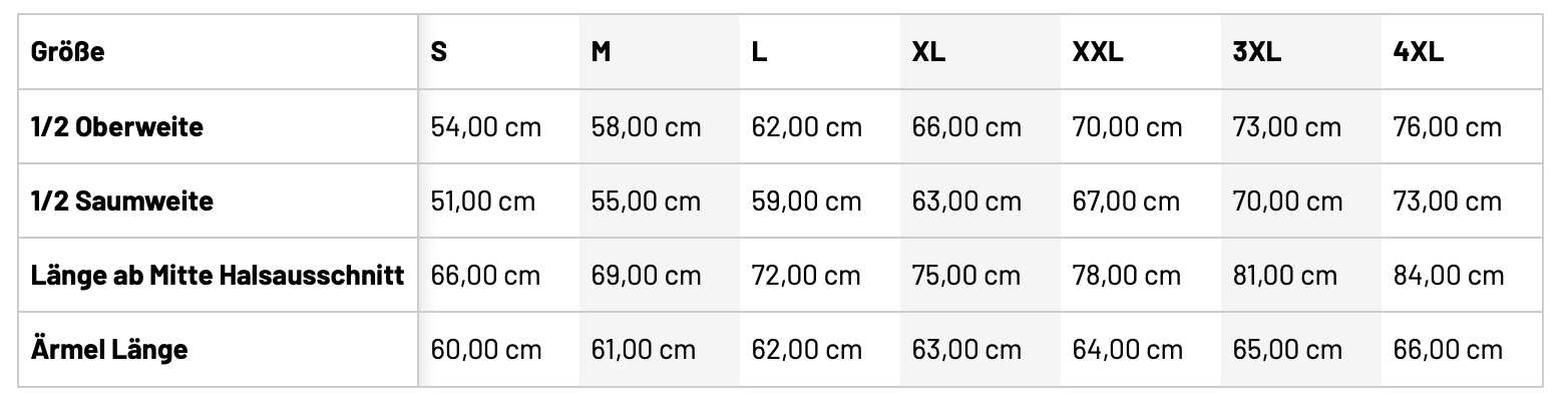 • Größentabelle
