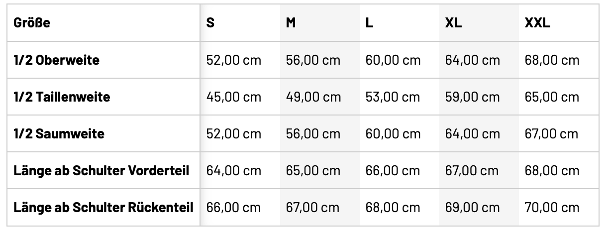 • Größentabelle