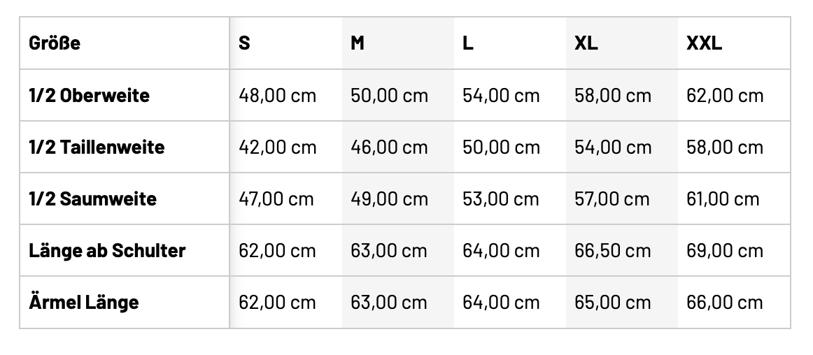 • Größentabelle