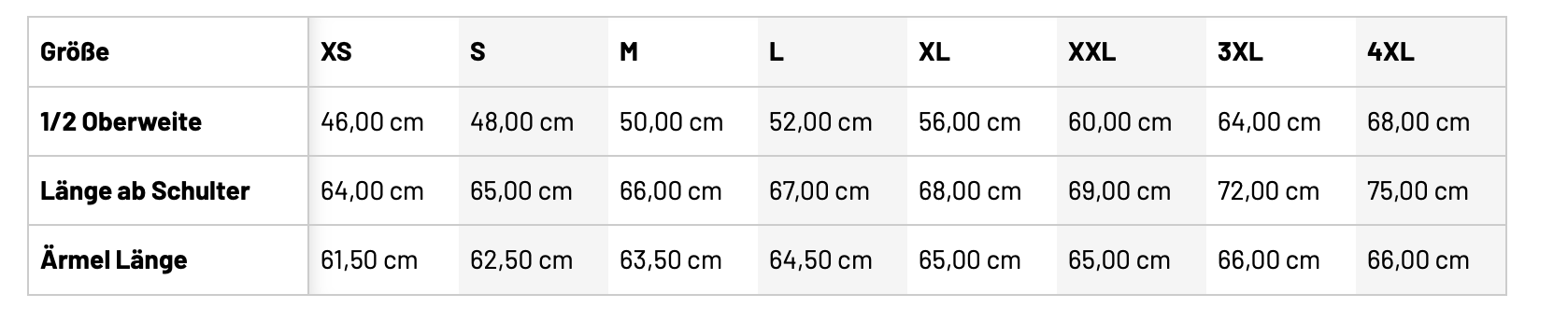 Größentabelle