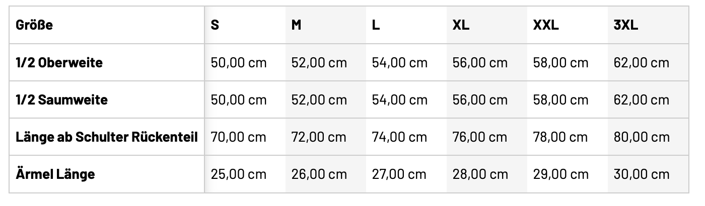 • Größentabelle