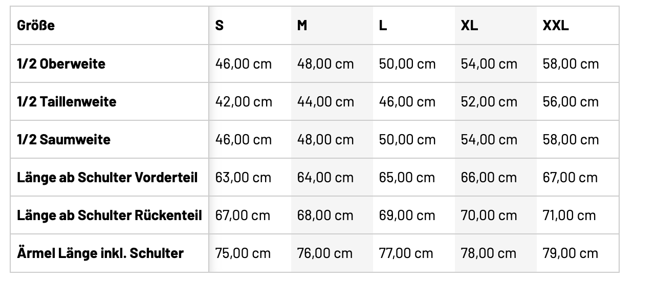 • Größentabelle