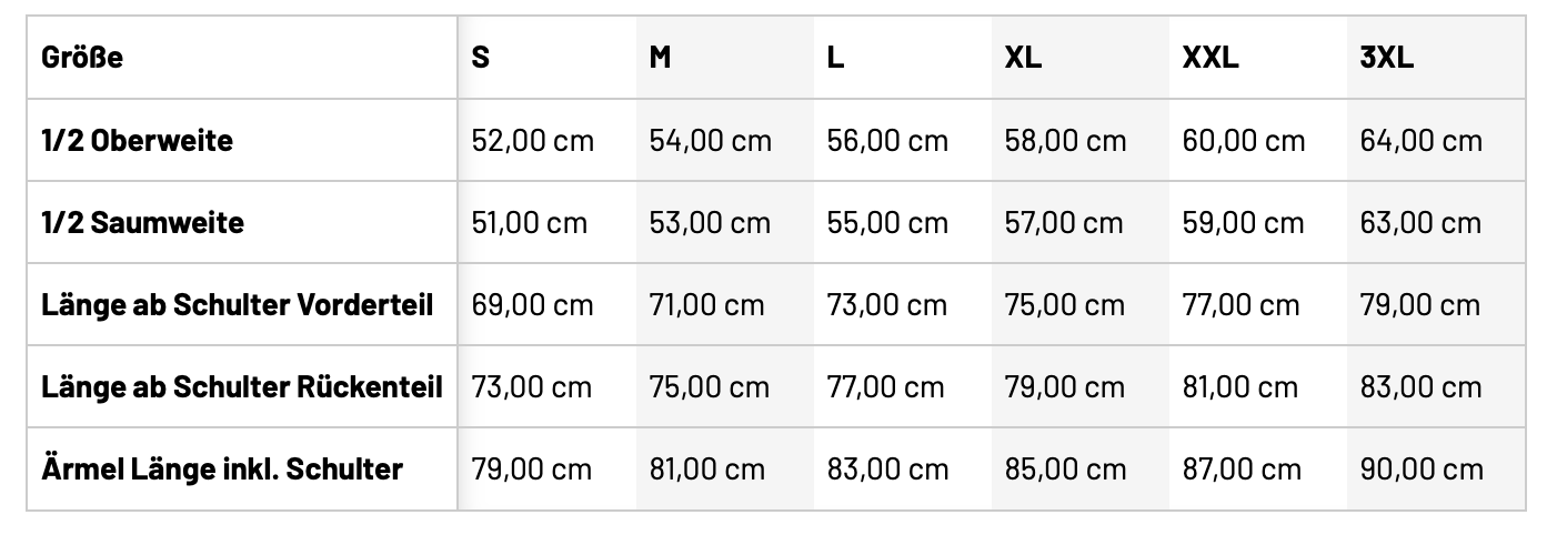 • Größentabelle