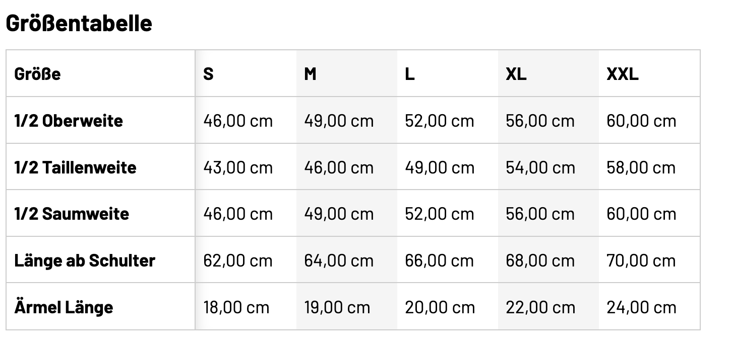 • Größentabelle