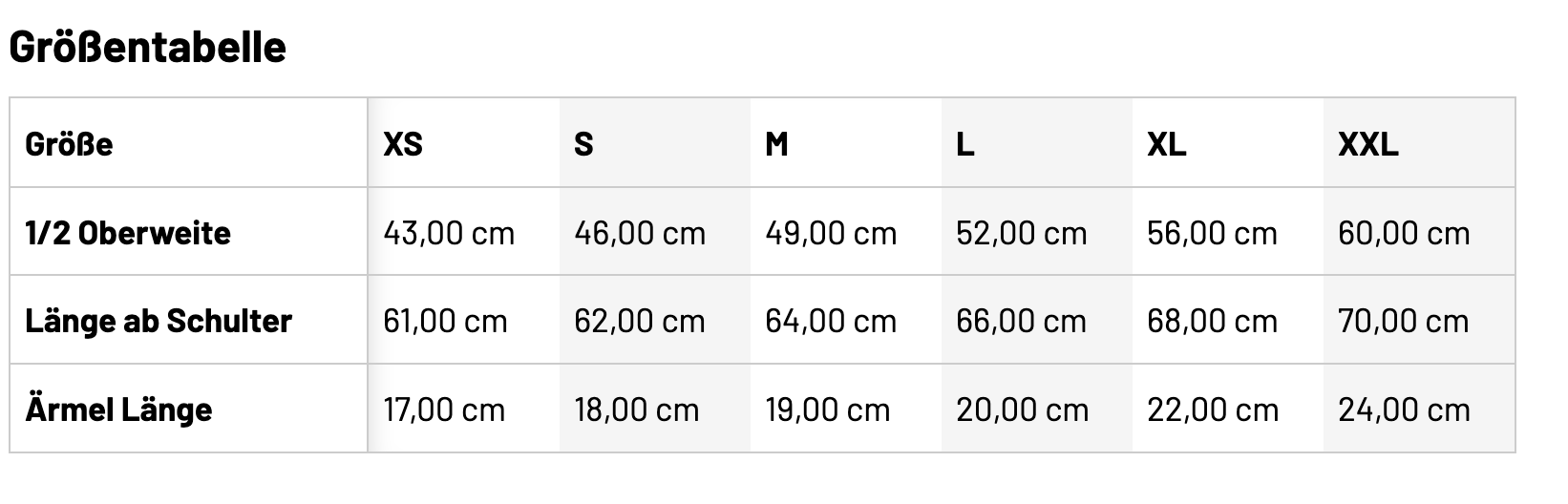 Größentabelle
