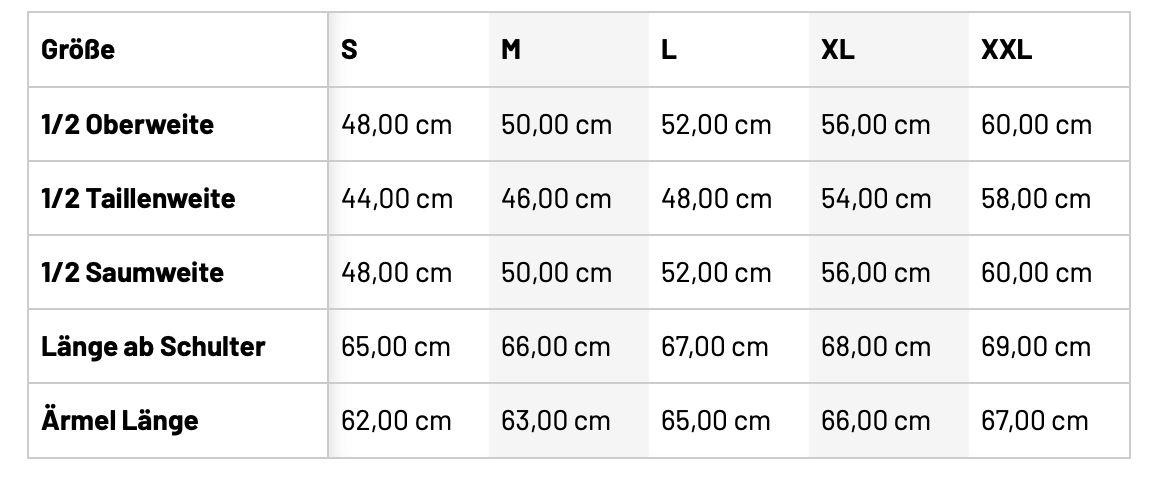 • Größentabelle