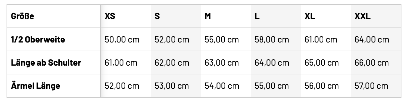 • Größentabelle