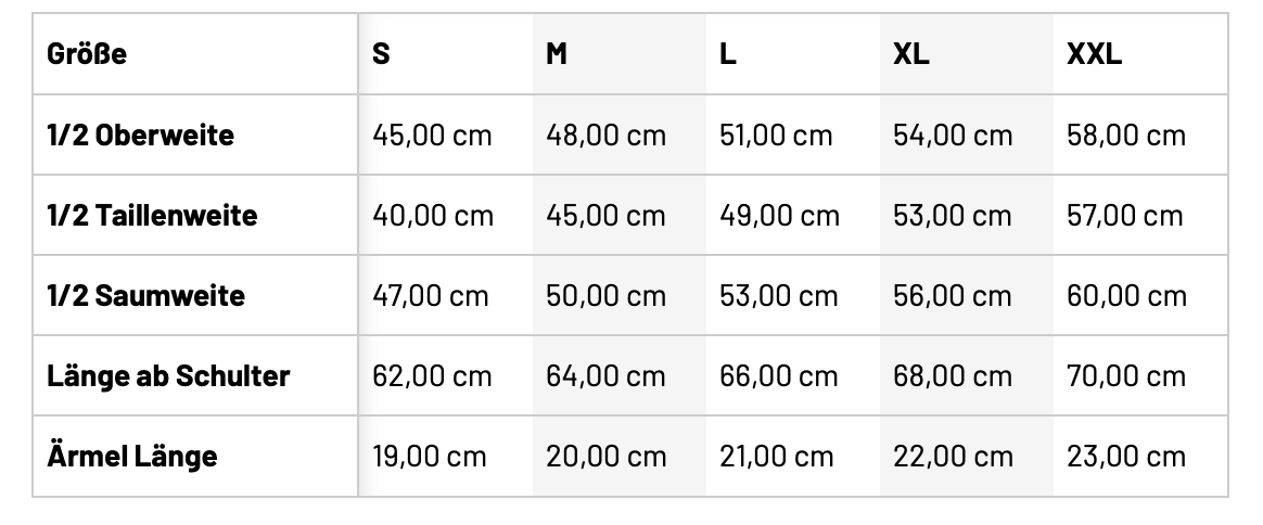 • Größentabelle